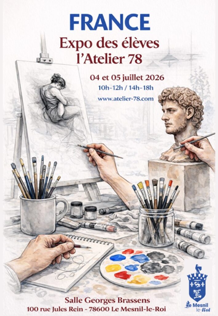 Exposition de dessins, pastels, acryliques, gouaches, sculptures de tous les membres de l’atelier 78.